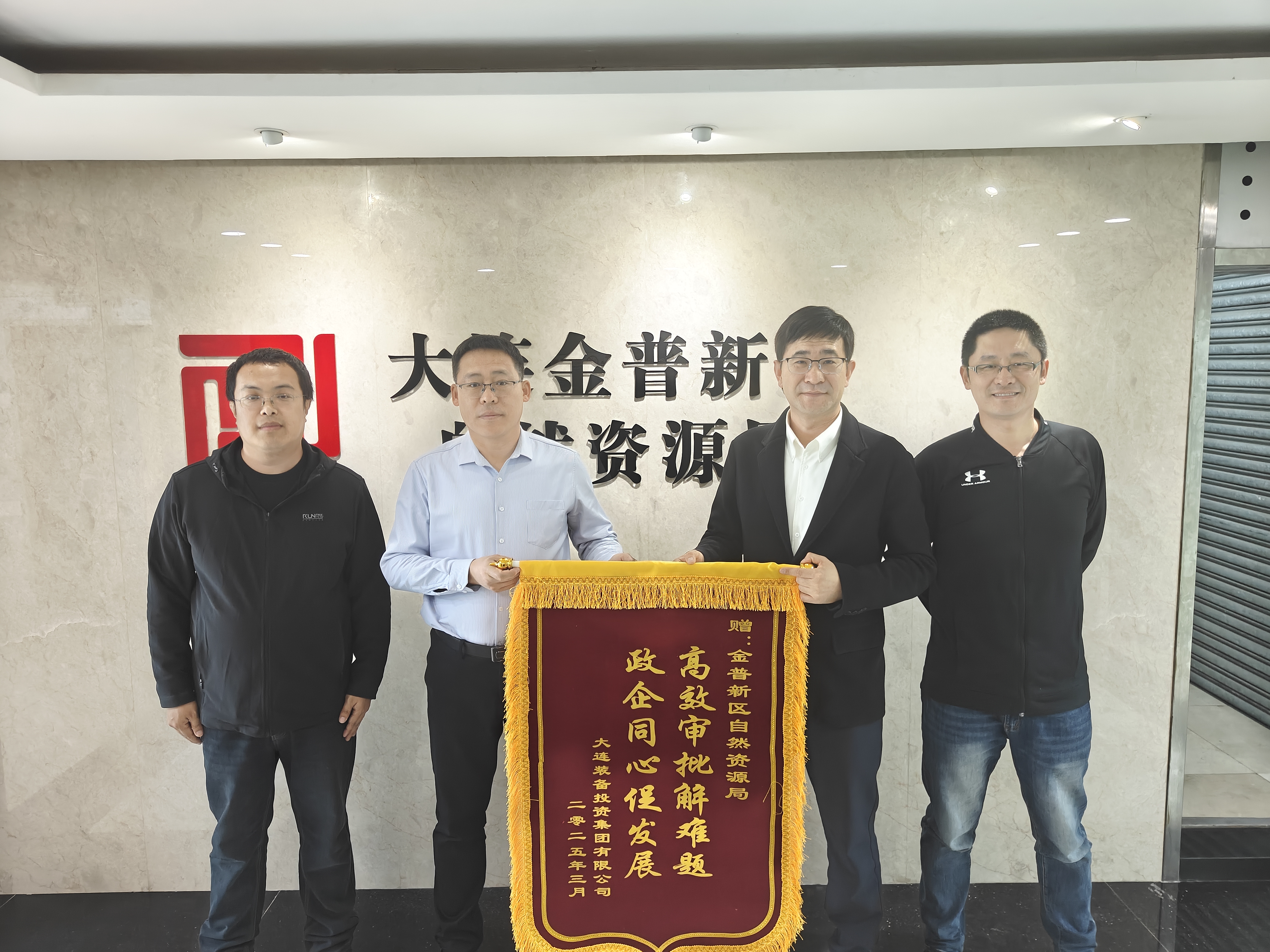 在市國資委、市國資運(yùn)營公司給予組織專項(xiàng)會(huì)議、出具確權(quán)函件支持的關(guān)鍵時(shí)期,金普新區(qū)自然資源局主動(dòng)作為、高效協(xié)同,有效加快了審批進(jìn)度。在政企雙方的共同努力下,裝備投公司成功與金普新區(qū)自然資源局簽訂土地承租合同,解決了長達(dá)十余年的國有資產(chǎn)遺留問題。2025年3月25日,裝備投公司特向金普新區(qū)自然資源局贈(zèng)送錦旗與感謝信,對(duì)其在攜手化解歷史遺留問題期間給予的支持與幫助,致以由衷的感謝與誠摯的敬意。